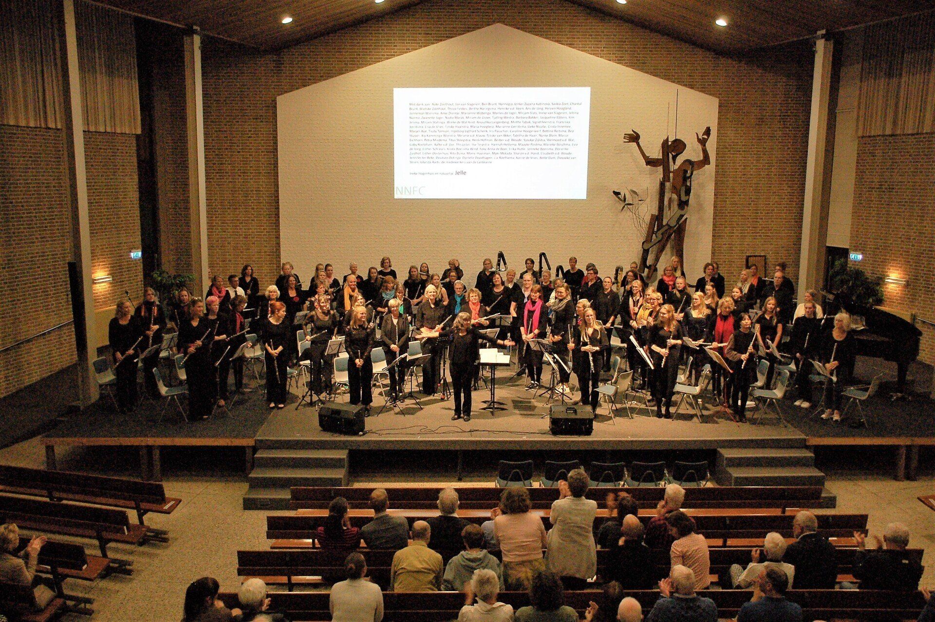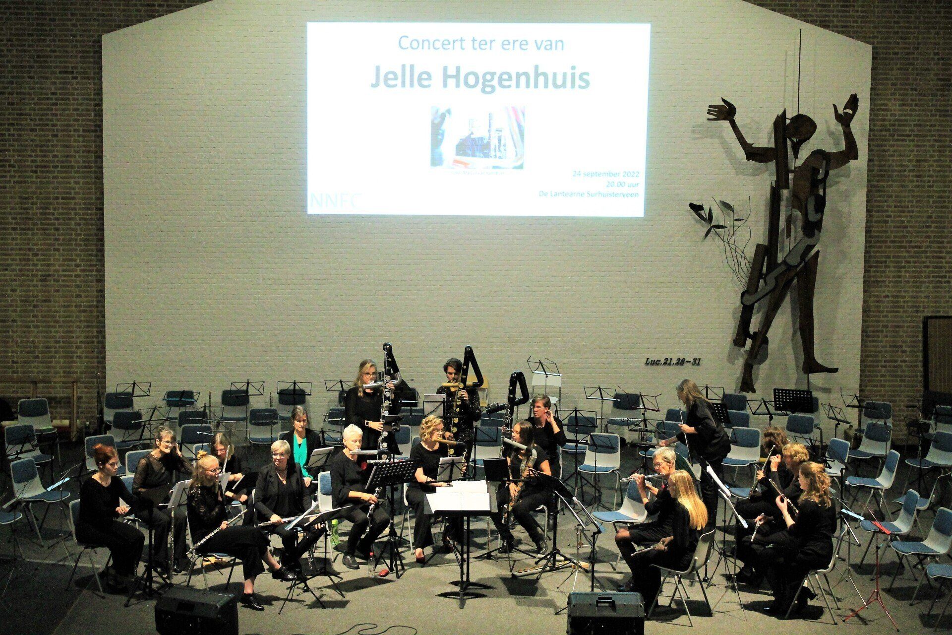 Het Noord Nederlands Fluit Collectief organiseerde ter ere van Jelle Hogenhuis een meespeeldag met eindconcert, waar een aantal van zijn composities en arrangementen voor dwarsfluitorkest gespeeld werden.
